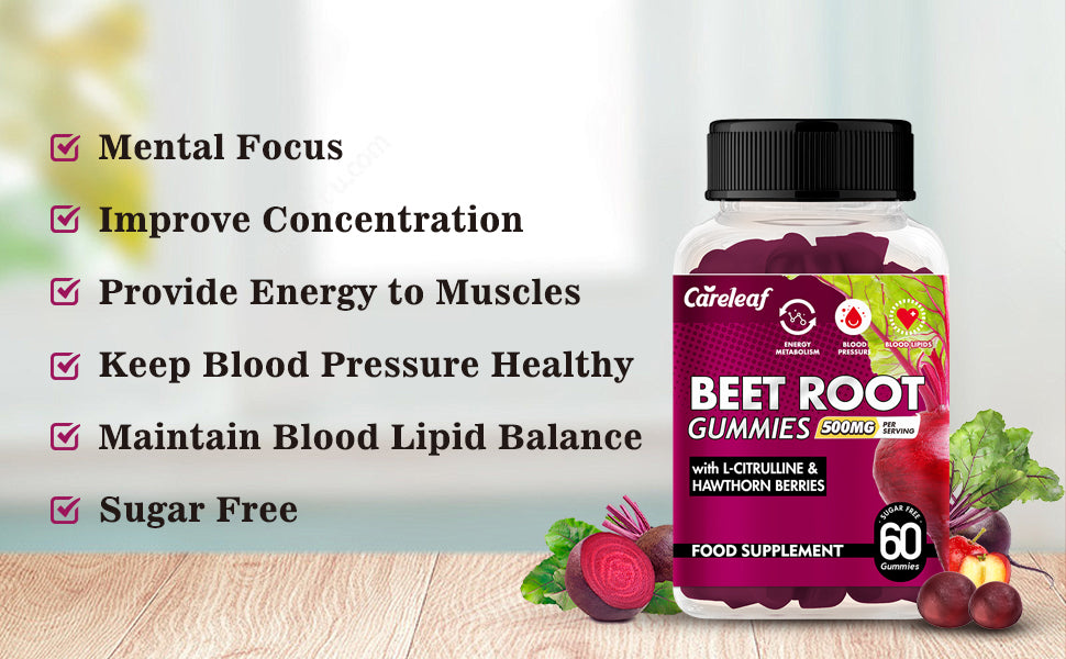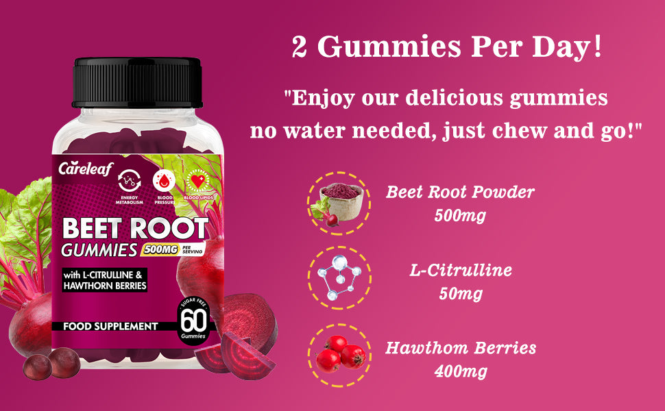 - **Natural Energy Boost** – Packed with natural nitrates from beets, these gummies help support healthy energy levels, giving you a revitalizing boost throughout the day.