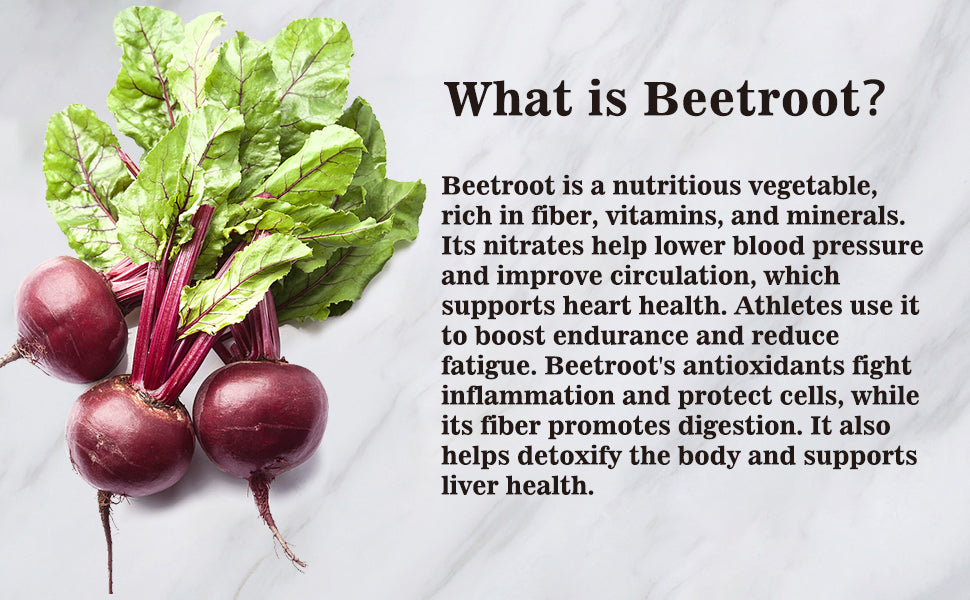 - **Supports Heart Health** – Rich in antioxidants and nitrates, beet root may promote healthy blood flow and overall cardiovascular function.